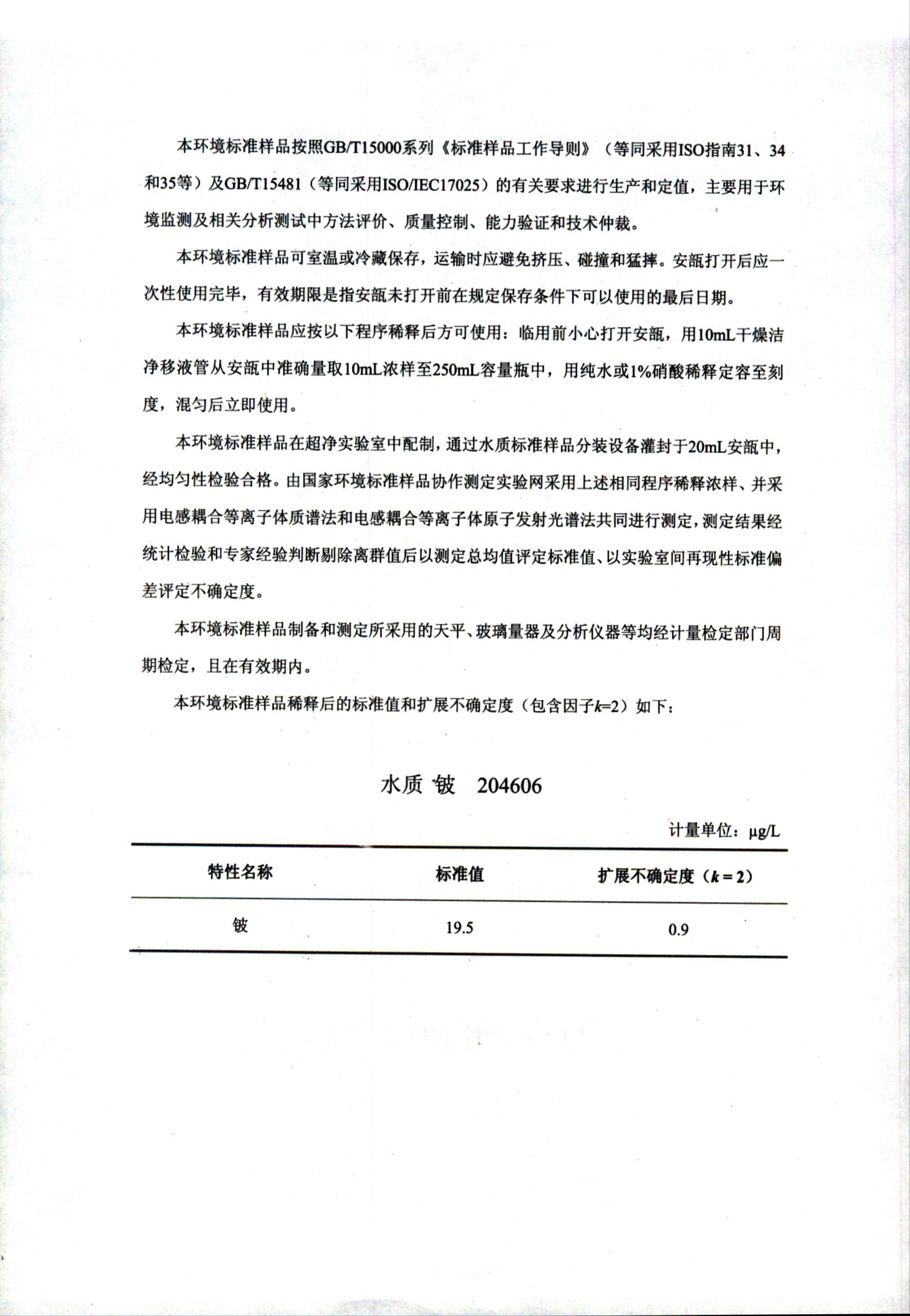 如果上述信息尚不能滿足您的需求,請填寫標準樣品 技術服務定制需求表,我們將盡快研究并給予回復。
