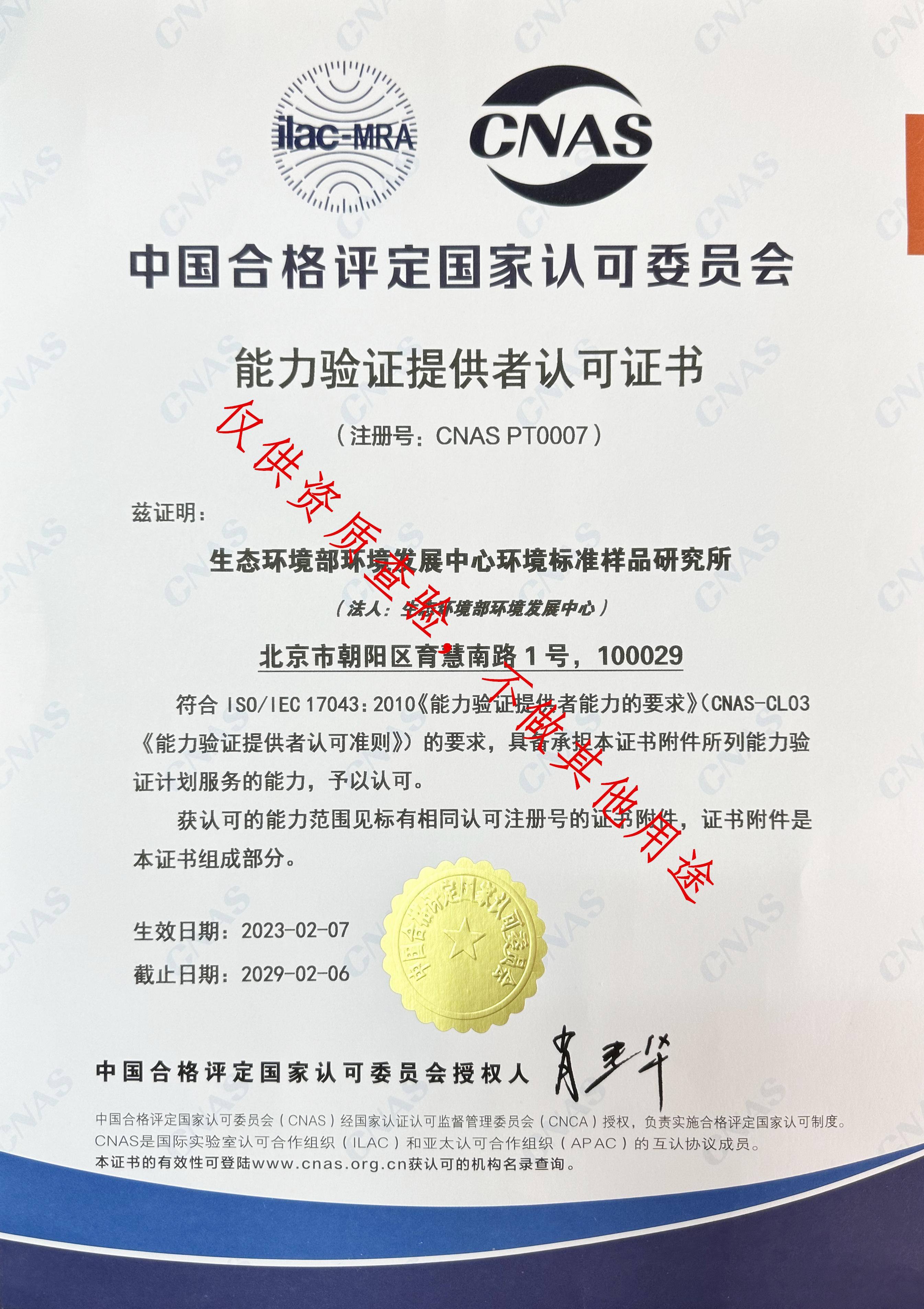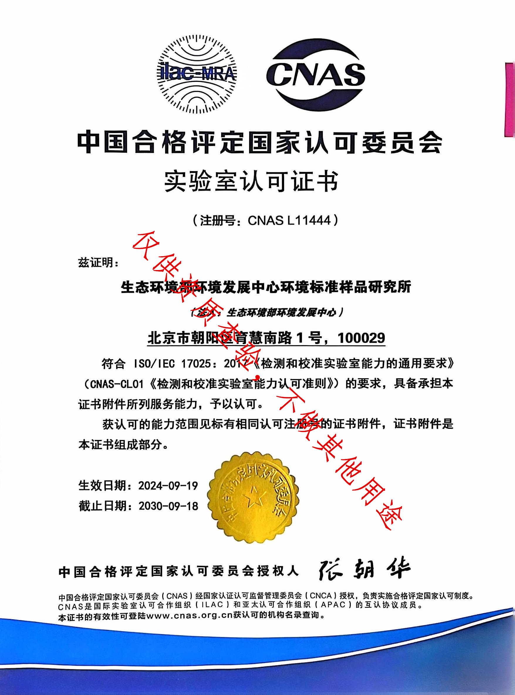 于2005年12月在國內率先獲得中國合格評定國家認可委員會(CNAS)標準物質/標準樣品生產者認可(證書編號為No. CNAS RM0001),